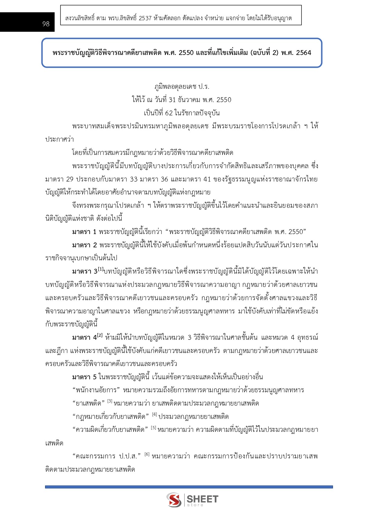 – แนวข้อสอบพระราชบัญญัติวิธีพิจารณาคดียาเสพติด พ.ศ. 2550 และแก้ไขเพิ่มเติมถึง (ฉบับที่ 2) พ.ศ. 2564