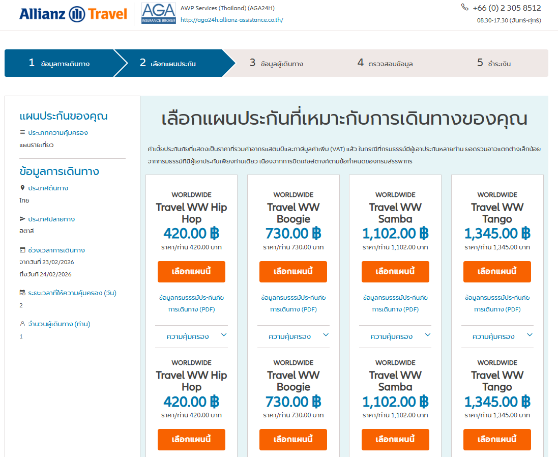 https://allianz-assistance.co.th/travel/ เลือกแผนประกันการเดินทางที่เราสนใจ ไม่ว่าจะ รายเที่ยว, รายปี หรือ นักเรียนก็มีค่ะ