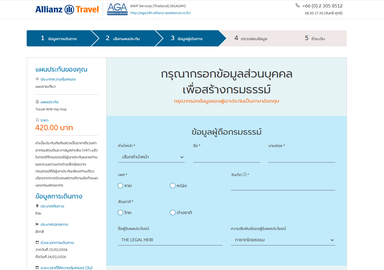 3. กรอกรายละเอียดผู้เดินทางให้ครบถ้วน