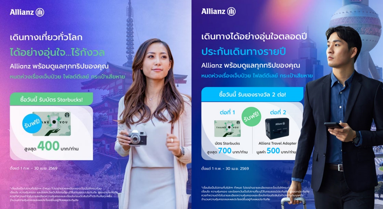 สำหรับคนที่เดินทางไปเที่ยวต่างประเทศบ่อยๆ แบบเราสองคน ก็แนะนำให้ซื้อ ประกันเดินทางต่างประเทศ "แผนรายปี" เพราะซื้อประกันภัยการเดินทางครั้งเดียว แต่คุ้มครองครอบคลุมตลอดทั้งปี และมีตัวเลือกของระยะเวลาของแต่ละทริป ตั้งแต่ 31 วันต่อทริป จนถึง 365 วันต่อทริป เลยทีเดียว โปรโมชั่นประกันเดินทาง แผนรายปี ซื้อประกันเดินทางแผนรายปี ตั้งแต่ 5,000 บาทขึ้นไป รับฟรี! บัตร Starbucks มูลค่าสูงสุด 700 บาท และ Allianz Travel Adapter มูลค่า 500 บาท รวมมูลค่าของรางวัลที่ได้รับสูงสุด 1,200 บาท