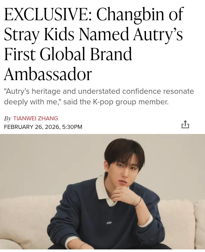 "Autry มีความยินดีที่จะประกาศแต่งตั้ง Changbin นักร้อง นักแต่งเพลง และโปรดิวเซอร์ชาวเกาหลีใต้ จากวง K-pop Stray kids เป็น Global Brand Ambassador คนแรกของแบรนด์"