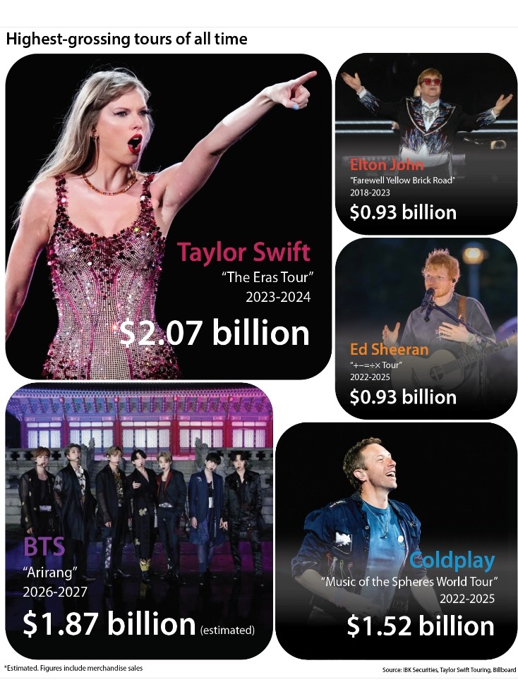 ตัวเลขดังกล่าวจะใกล้เคียงกับ "The Eras Tour" ซึ่งเป็นทัวร์แรกที่ทำรายได้ทะลุ 2 พันล้านดอลลาร์ แซงหน้าศิลปินระดับตำนานอย่าง Coldplay, Elton John และ Ed Sheeran