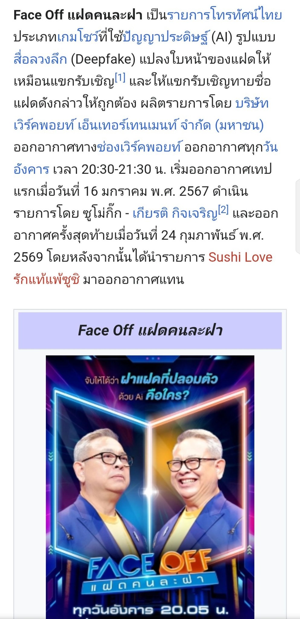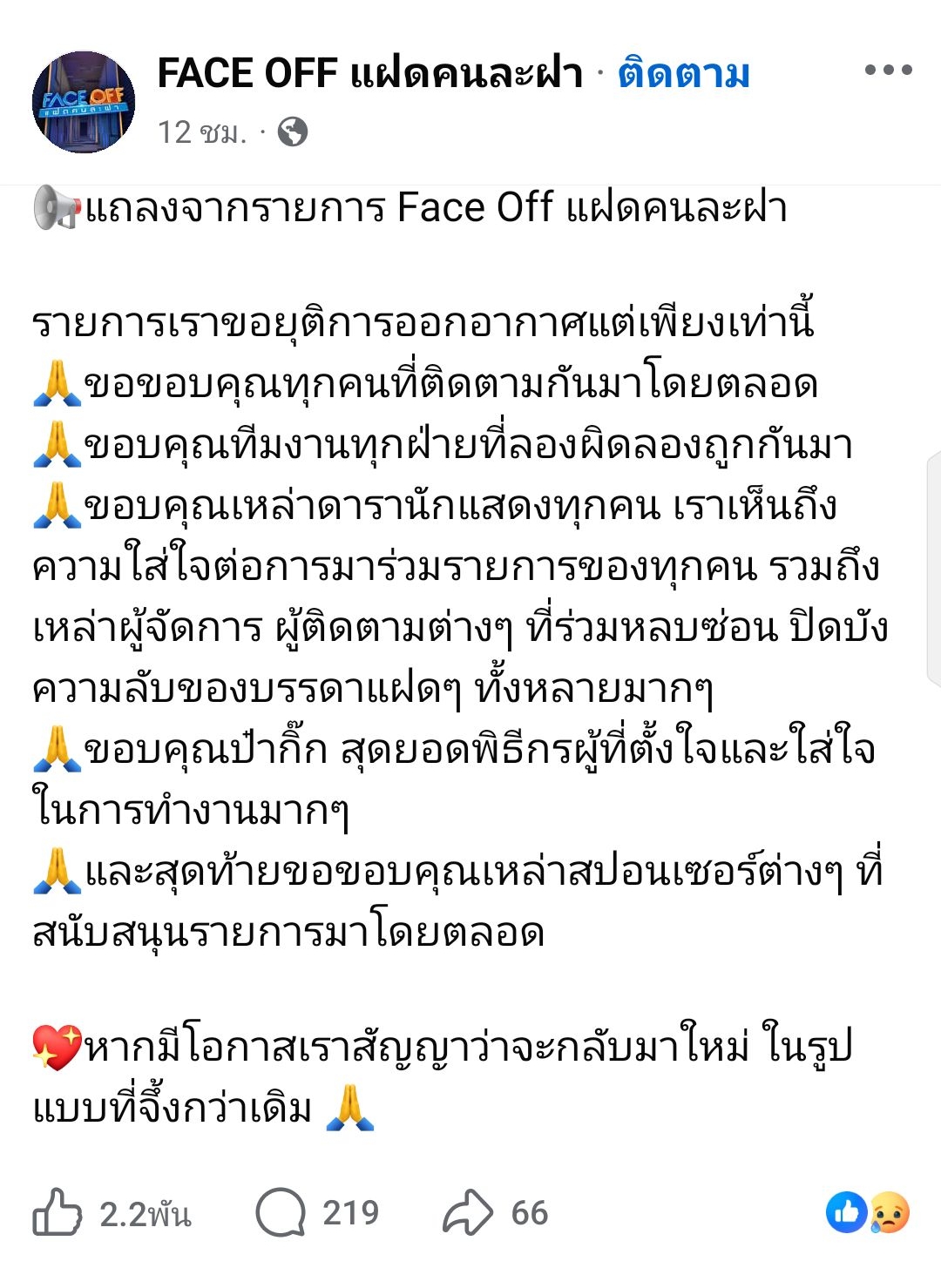 📢 แถลงจากรายการ Face Off แฝดคนละฝา : รายการเราขอยุติการออกอากาศแต่เพียงเท่านี้