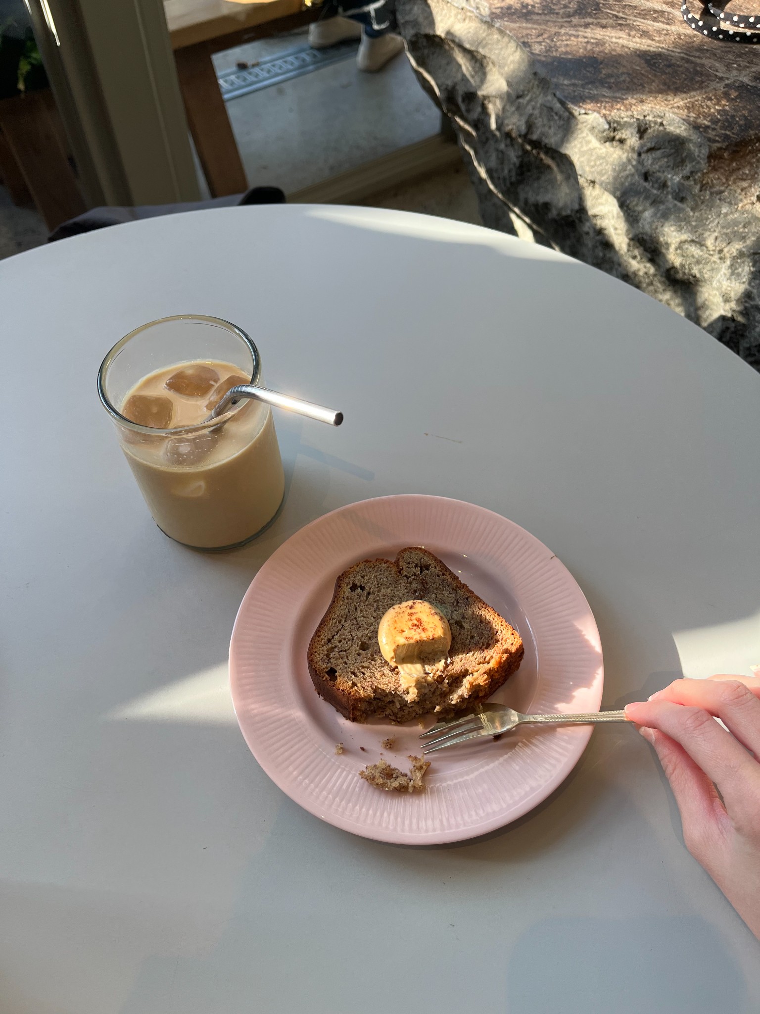 สั่งเป็น Iced Latte กับ Banana Bread with espresso butter