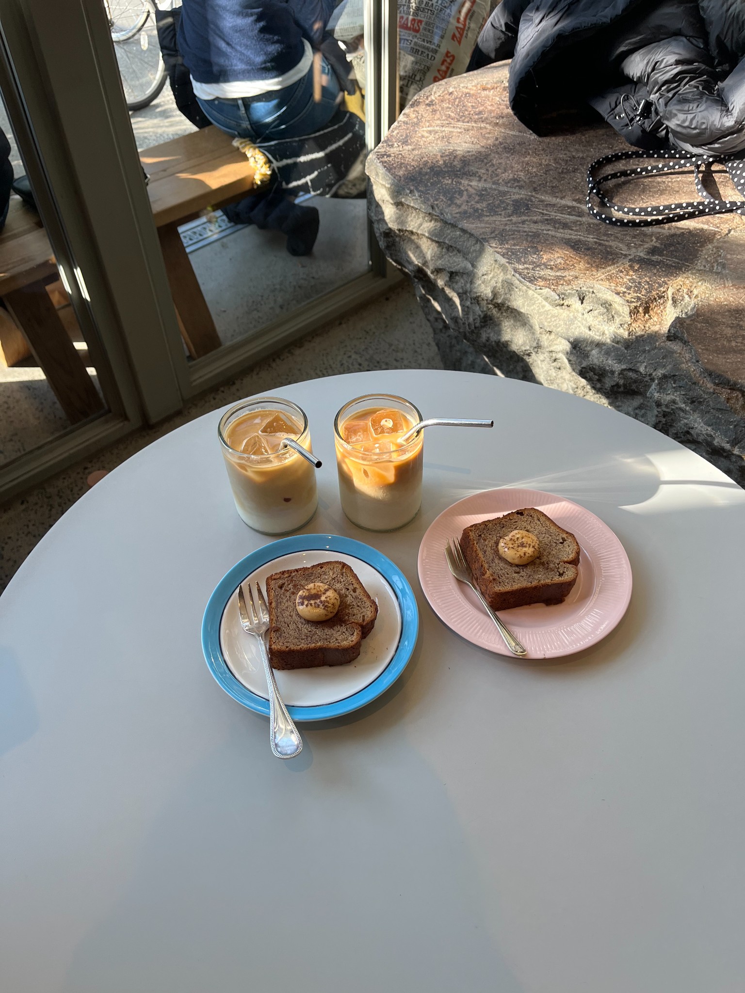 ที่ว้าวคือเนยที่เขาโปะมาให้ด้านบน คือมันเป็นเนยรสกาแฟแหละ ไม่ค่อยได้กินเนยรสแบบนี้ อร่อยกว่าที่คิดไว้มากกกกก แบบว่าถูกใจใช่เลย กลิ่นกาแฟมันหอมแตะจมูก! ไม่หวานมากด้วย ใครไปญี่ปุ่นแล้วกำลังมองหาคาเฟ่นั่ง แนะนำเลยค่า
