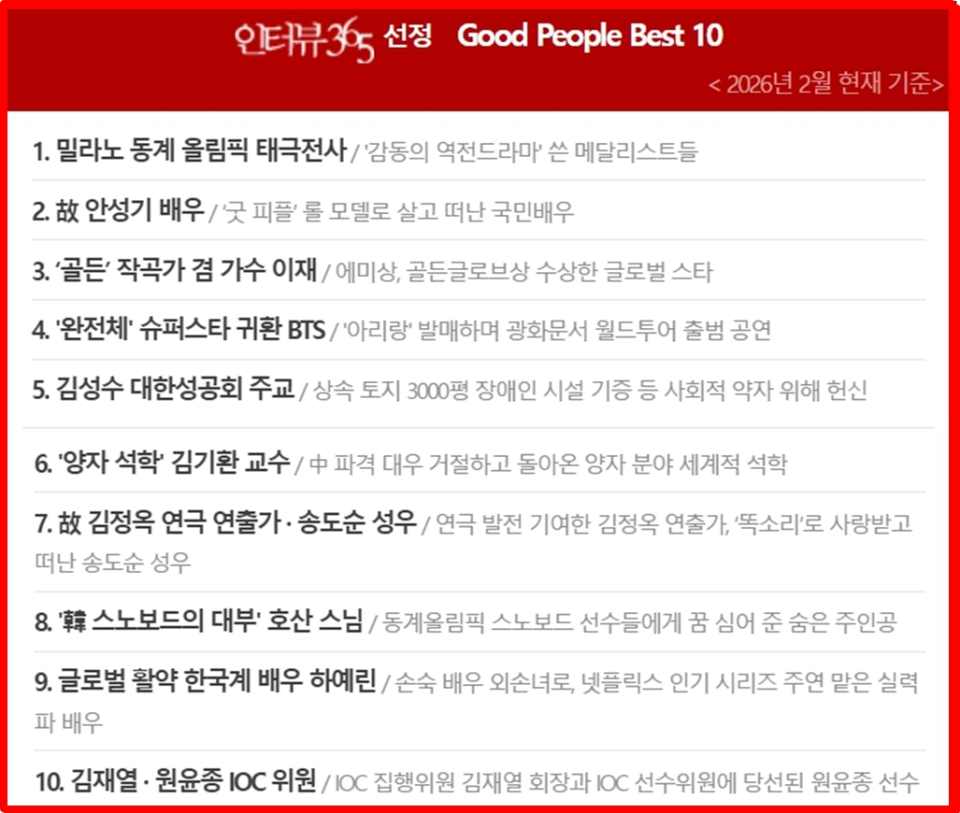 ◆ การจัดอันดับ 'Good People Top10' ครั้งที่ 65