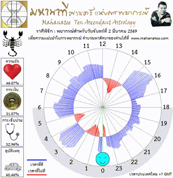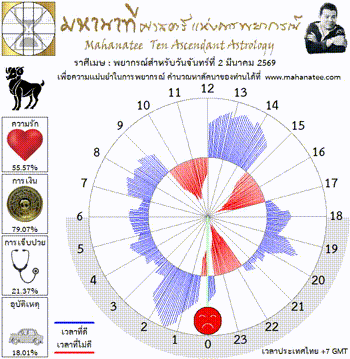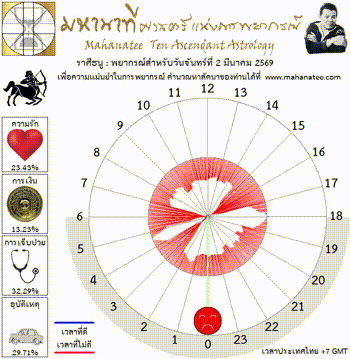 แผนภูมิและพยากรณ์ 12 ราศี สำหรับ วันจันทร์ที่ 2 มีนาคม 2569