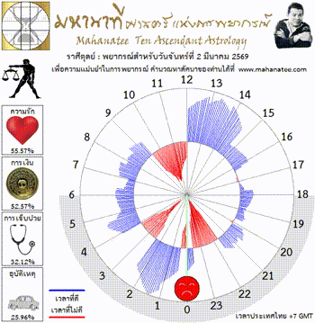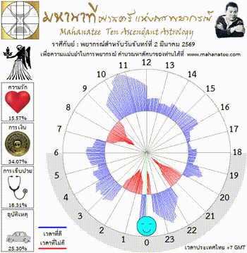 คำนวณหาลัคนาที่ถูกต้องของท่านได้ที่ https://www.mahanatee.com/ และ พยากรณ์พื้นดวงชะตาฟรี ไม่คิดค่าใช้จ่าย แผนภูมิและพยากรณ์ 12 ราศี สำหรับ วันจันทร์ที่ 26 มกราค