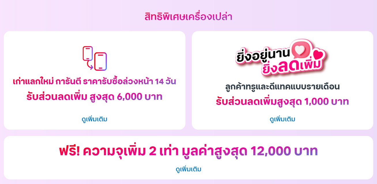 👉 อยากได้ ของแถม + ผ่อนสบายๆ + ความบันเทิง True / dtac นำอยู่