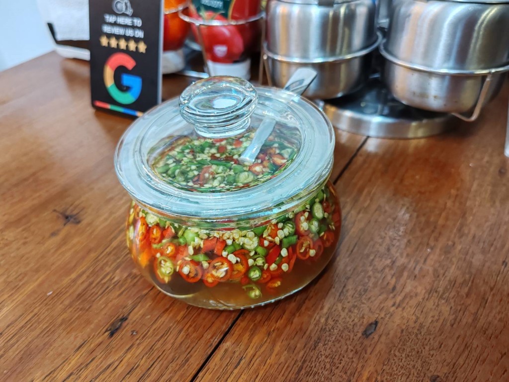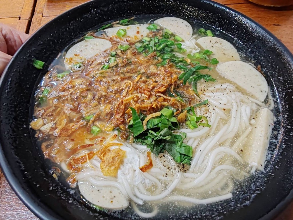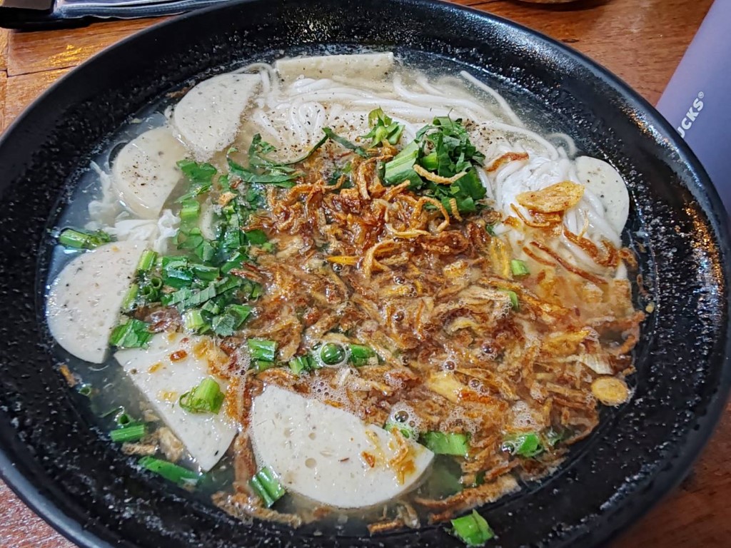 หอมเจียวมาแบบนี้เลย หอมละมุน หมูสับก้อนก็ดี น่องไก่ก็ไม่เลว หมูยอ OK เลย น้ำซุปนัว ไม่รู้ใส่ฟ้าไทยไหมนะครับ 555