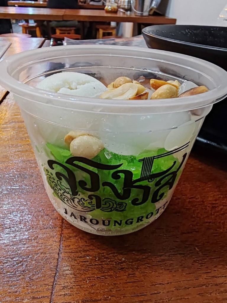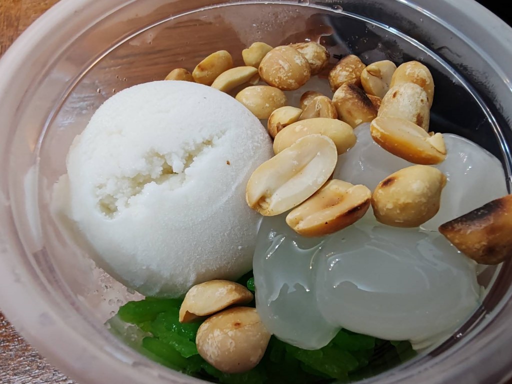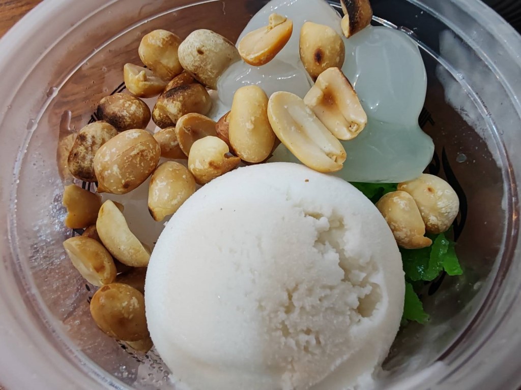 ผมใส่ข้าวเหนียว ลูกชิด แล้วก็ถั่ว จะบอกว่า ไอติมกะทิ อร่อยเกินคาด แบบเข็มขัดสั้น ไป 2 นิ้ว อิอิ