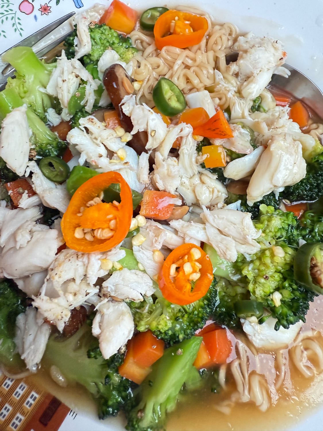 เส้นมาม่าราดหน้าเนื้อปู
