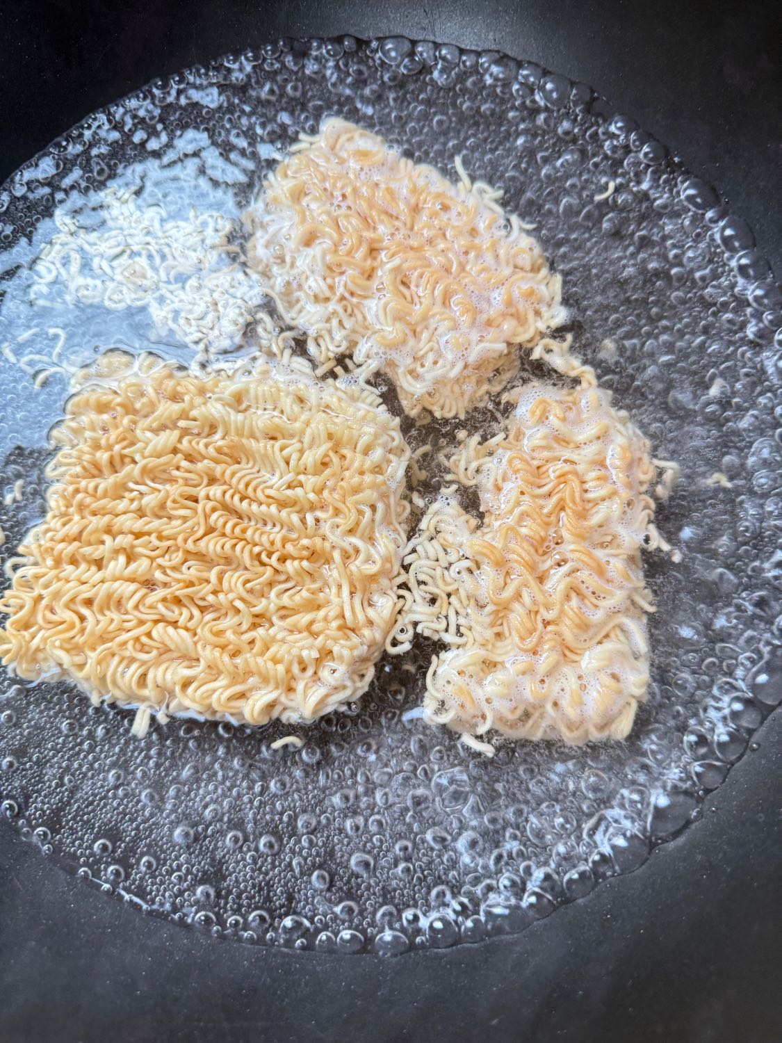 พักเส้นขึ้นไว้ เทน้ำต้มมาม่าออก ใส่น้ำสะอาดลงกะทะสำหรับลวกบล๊อคโคลี่ ใส่เกลือลงไปนิดหน่อย