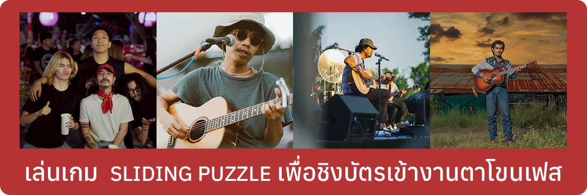 เข้าไปเล่นเกม Sliding puzzle รูปศิลปินที่มาในงาน ยุวลี, เขียนไข และวานิช, อภิรมย์ และ เล็ก รัชเมศฐ์ 4 ศิลปิน 4 ด่าน ใครทำเวลาได้ดีที่สุด 10 ท่านแรก จะได้รับรางวัลเป็นบัตรเข้างาน TAKHON FEST | ตาโขนเฟส ท่านละ 1 ใบ