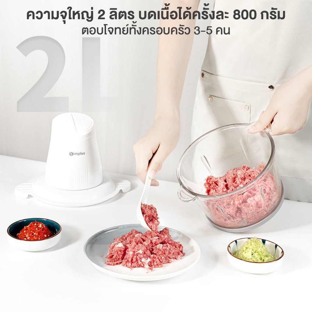 🍳🌀 เครื่องปั่นมือถือ Simplus 4in1 รุ่น DDJR004 โถ 2L บดเนื้อ/ผักไว 6 วิ มอเตอร์ 28000RPM 🍖🔥