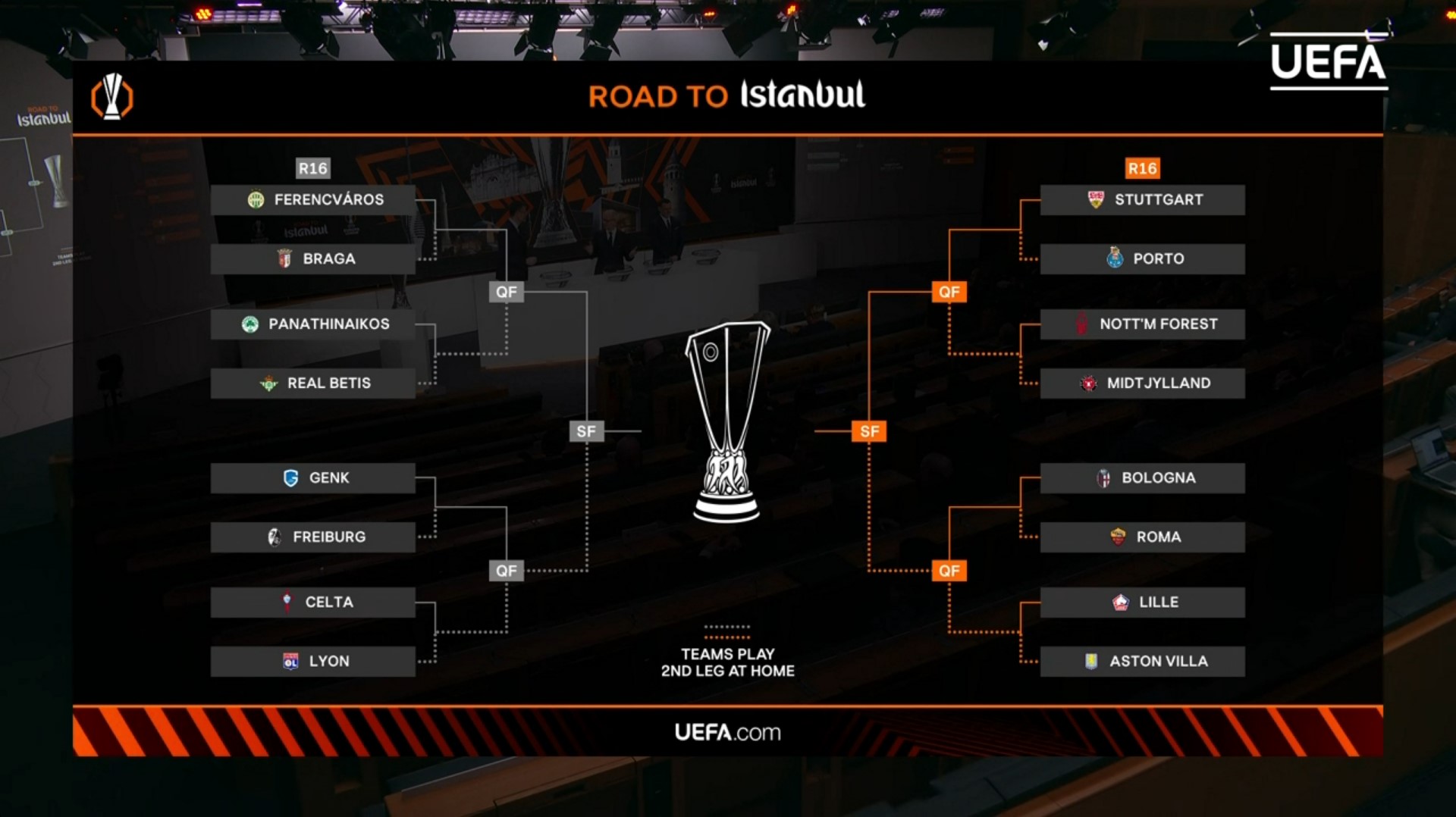 === ผลการจับสลาก UEFA Europa League & UEFA Conference League 2025/26 ตั้งแต่รอบ 16 ทีมสุดท้ายจนถึงรอบชิงชนะเลิศ ===