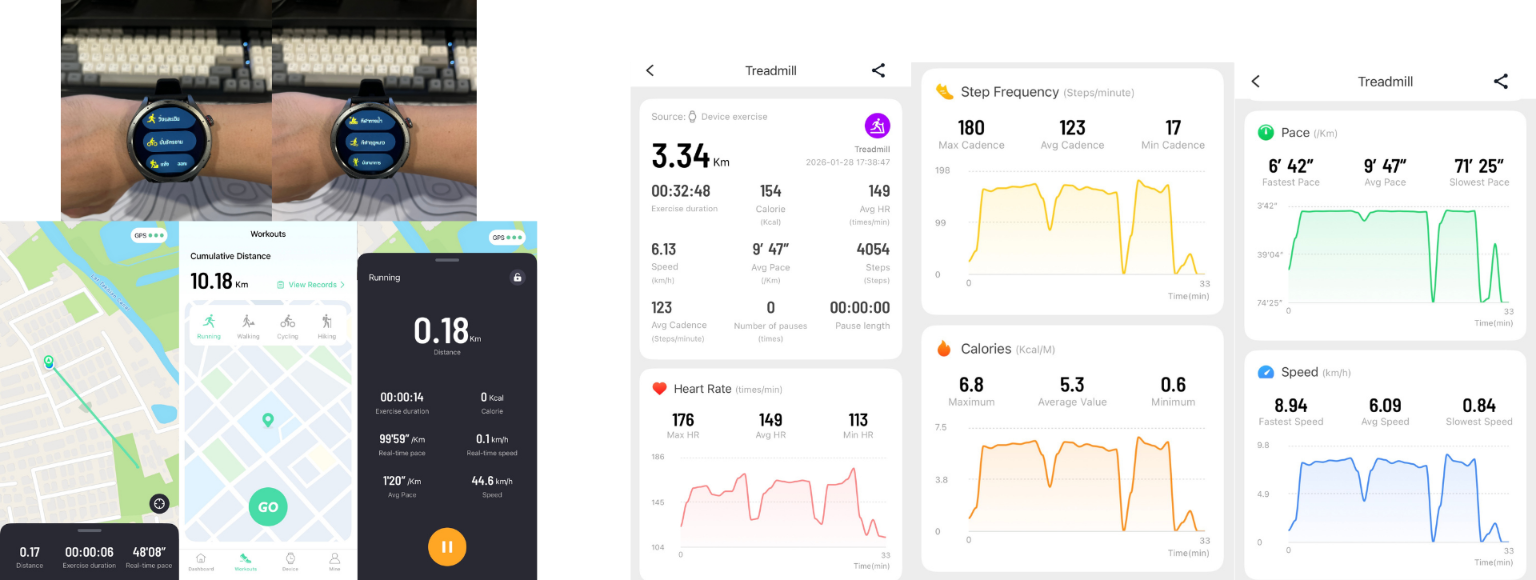 บอกข้อมูลในแอปละเอียด ทั้งแคล, นับก้าว, heart rate, ความเร็ว