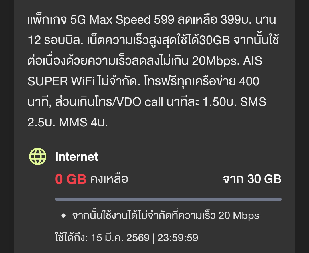 ทุกเพ็จเกจที่เคยสมัครเลย ของ AIS SUPER WIFI