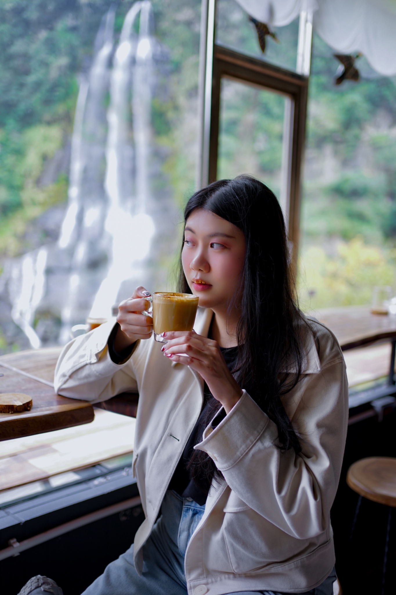 Tonyx คาเฟ่ลับวิวน้ำตกที่มู้ดดีมากในWulai ตัวร้านเป็นกระจกแบบวิวพาโนราม่า มองเห็นวิวน้ำตกมุมสูงแบบไม่ซ้ำใคร พร้อมมุมถ่ายรูปเริ่ดๆ 📸
