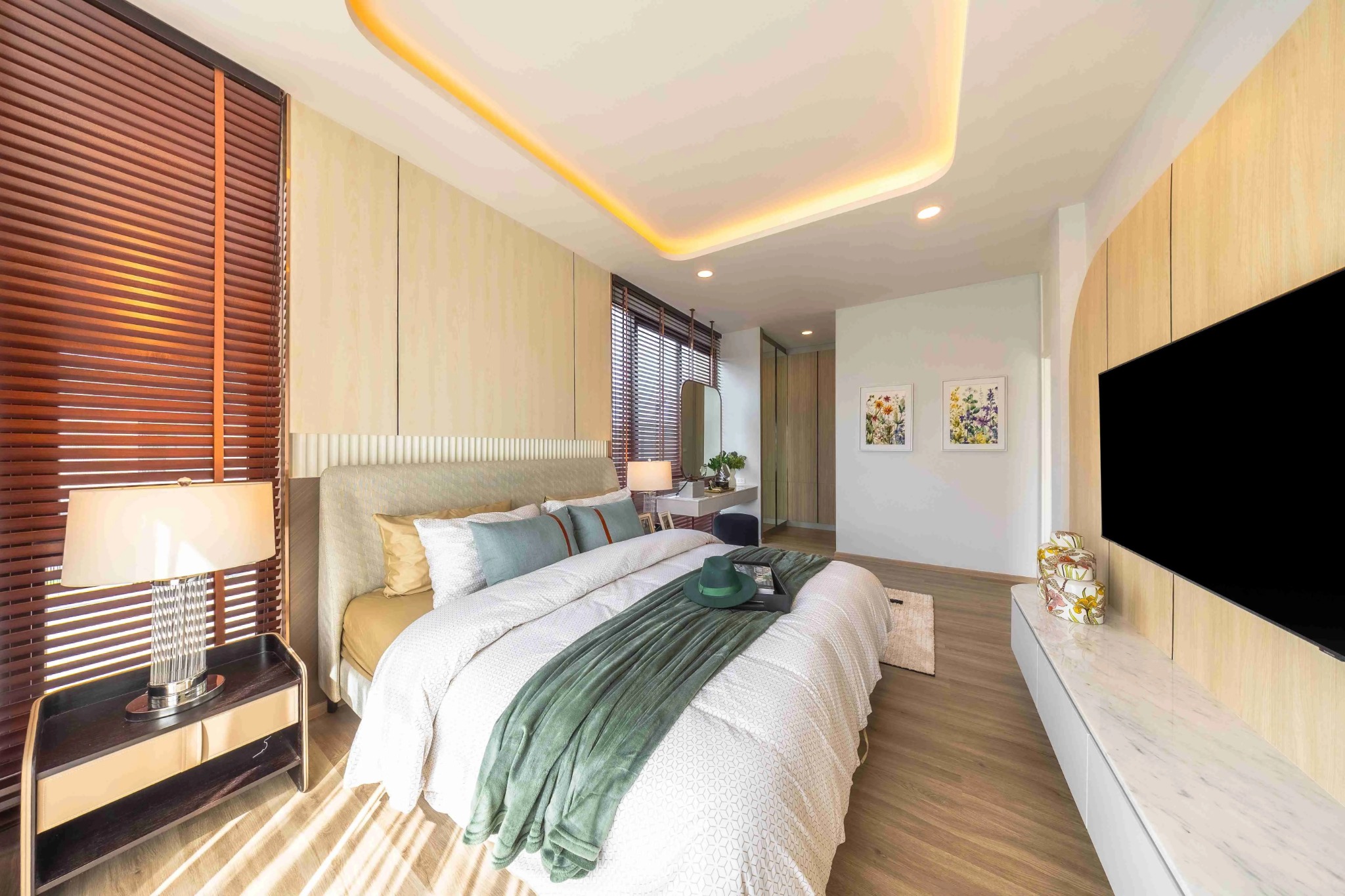 - Duplex 120: 3 ห้องนอน, 2 ห้องน้ำ, ที่จอดรถ 1 คัน