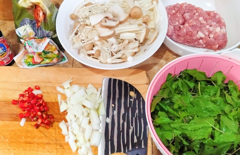 เข้าครัวทำ ข้าวกะเพราเห็ดสามอย่างหมูสับ ค่ะ