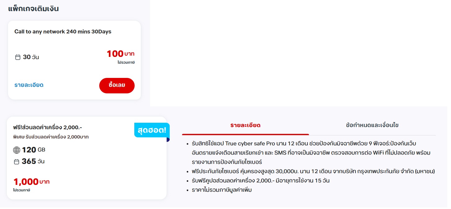 สอบถามเรื่องแพ็คเกจทรู