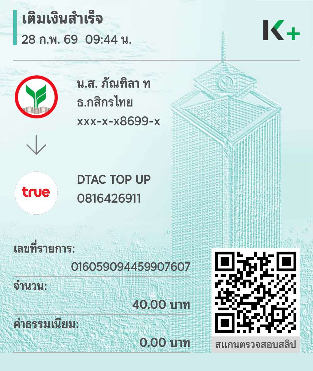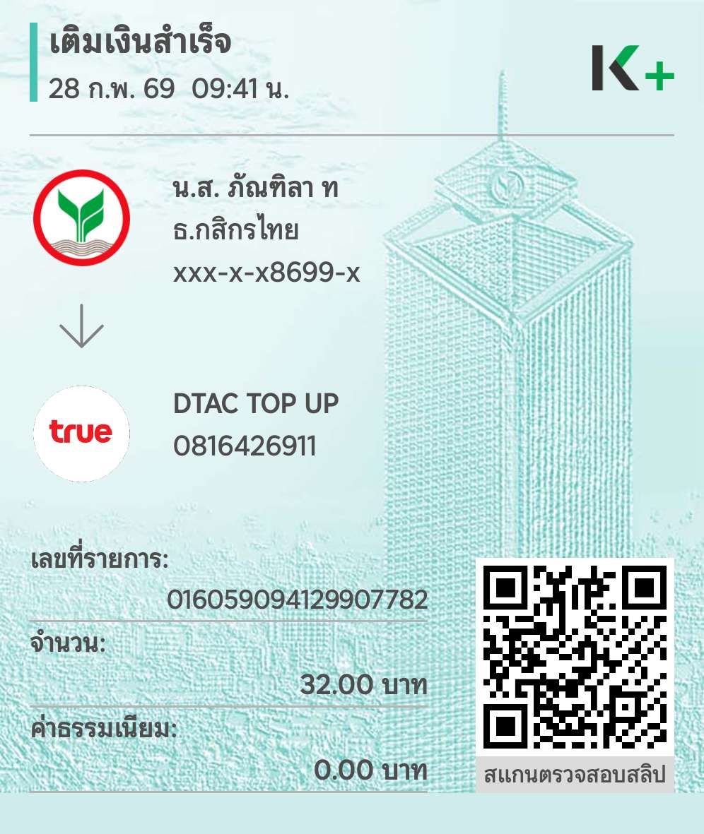 เติมผ่านเเอป Dtac ผ่านธนาคารกสิกรค่ะ