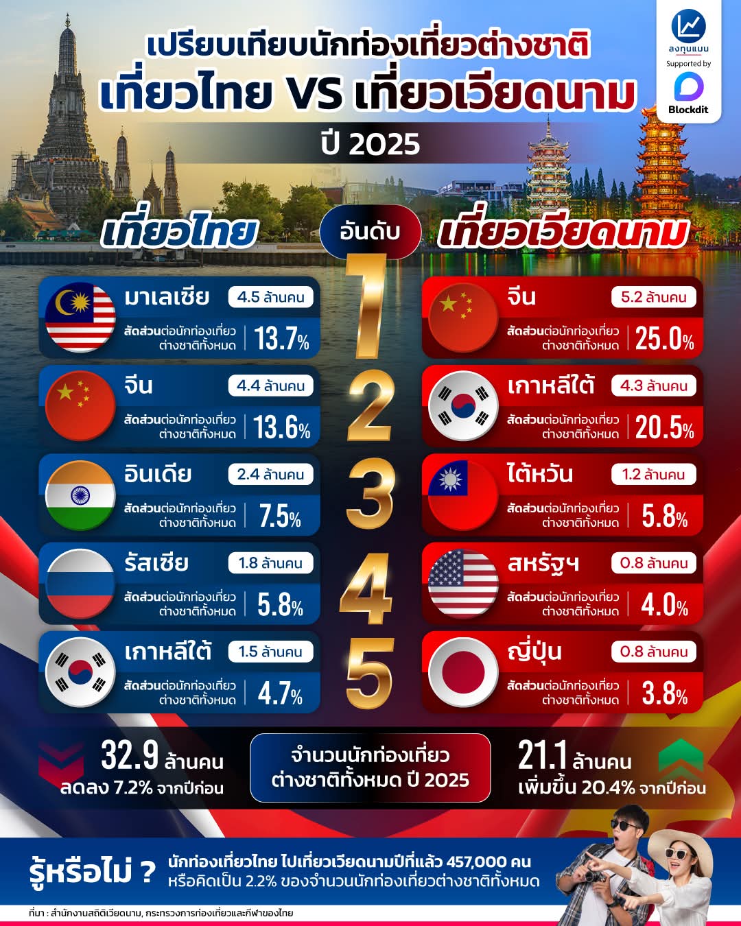 เปรียบเทียบนักท่องเที่ยวต่างชาติ เที่ยวไทย VS เที่ยวเวียดนาม