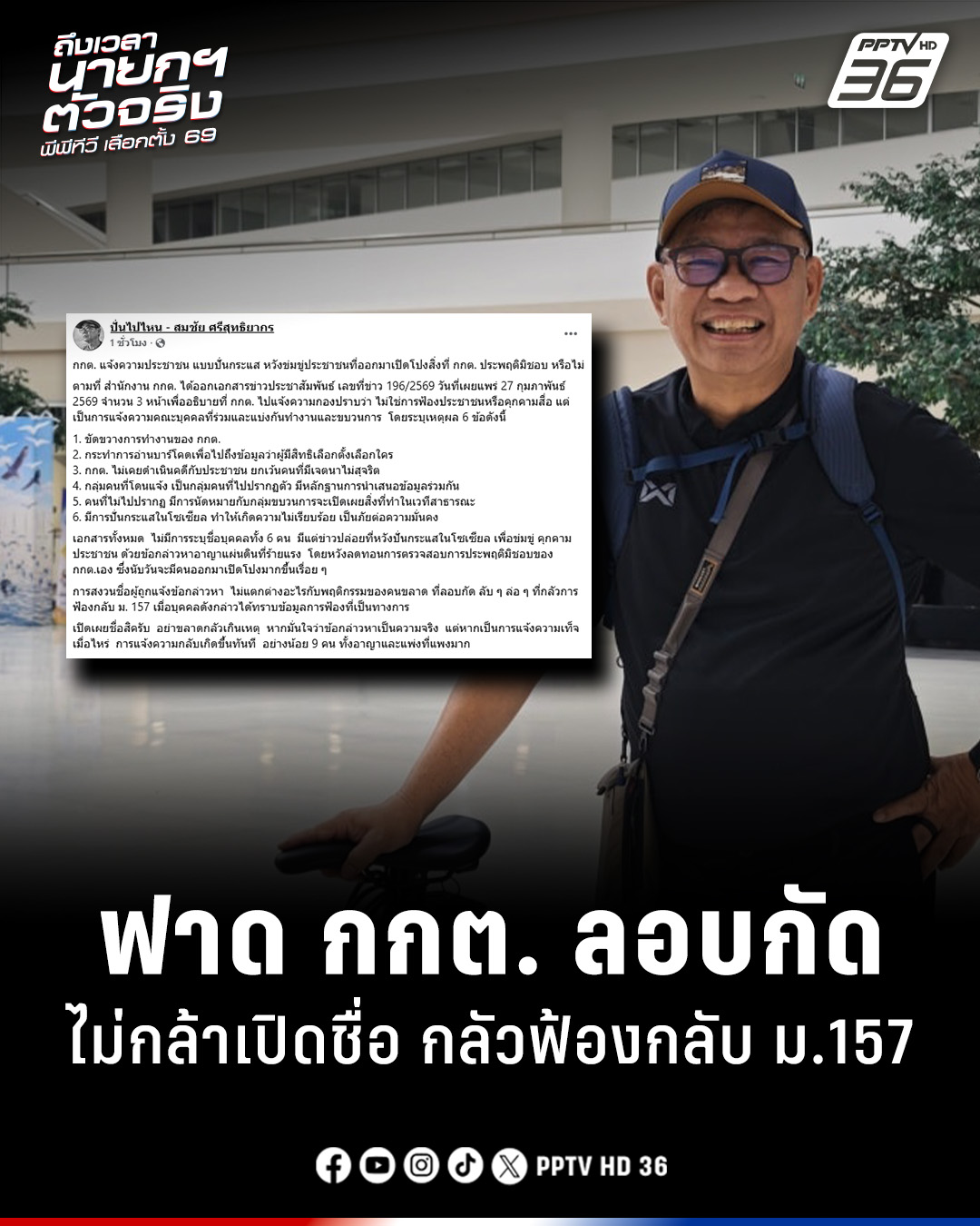 ตามที่ สำนักงาน กกต. ได้ออกเอกสารข่าวประชาสัมพันธ์ เลขที่ข่าว 196/2569 วันที่เผยแพร่ 27 กุมภาพันธ์ 2569 จำนวน 3 หน้าเพื่ออธิบายที่ กกต. ไปแจ้งความกองปราบว่า ไม่ใช่การฟ้องประชาชนหรือคุกคามสื่อ แต่เป็นการแจ้งความคณะบุคคลที่ร่วมและแบ่งกันทำงานและขบวนการ