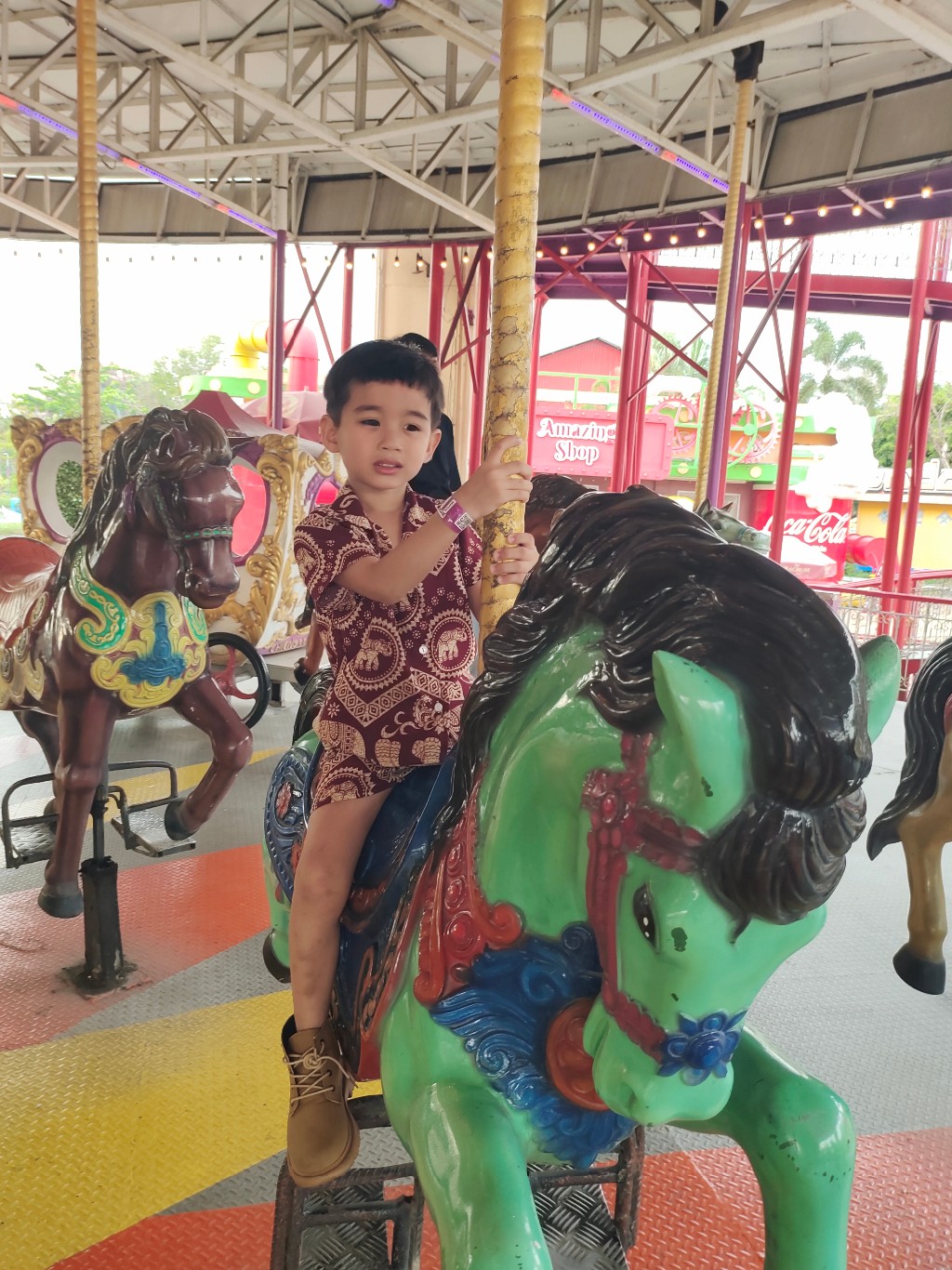 ต่อด้วยม้าหมุน 2 ชั้น แบบอลังการ แต่เปิดให้ขึ้นแค่ชั้นล่างเท่านั้น 🎪