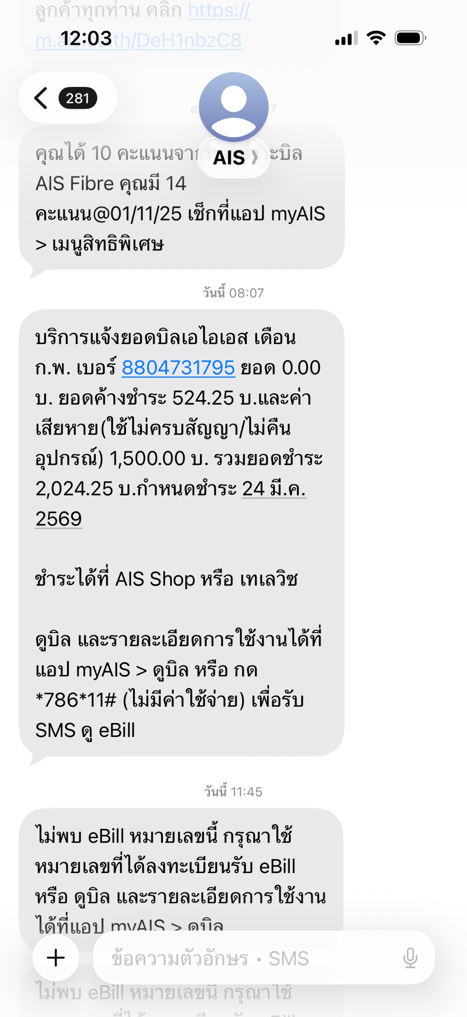 คือหนูเคยติดเน็ตบ้านค่ะ ของ ais แล้วย้ายบ้านมา ได้ประมาณ2-3 เดือน โดยไม่ได้ทำการยกเลิกเน็ตค่ะ ว่าจะติดต่อย้ายเน็ตตามทีหลังก็ไม่ได้ทำสักที แล้วมี sms เมื่อวันที่ 12/12/68 ว่ามีค้างชำระอยู่ที่ 1,324 บาท