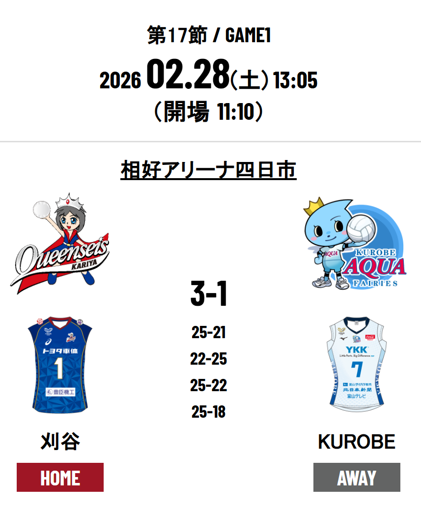 Queenseis Kariya 3 - 1 KUROBE Aqua Fairies