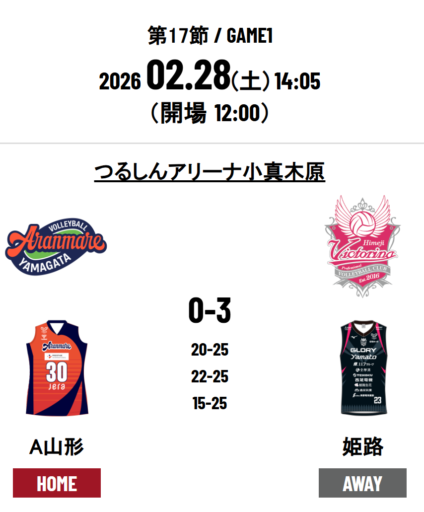 Toray Arrows Shiga 0 - 3 SAGA Hisamitsu Springs