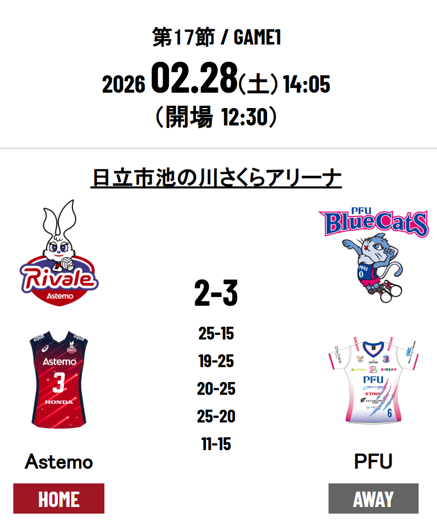 ASTEMO Rivale Ibaraki 2 - 3 PFU Bluecats Ishikawa Kahoku