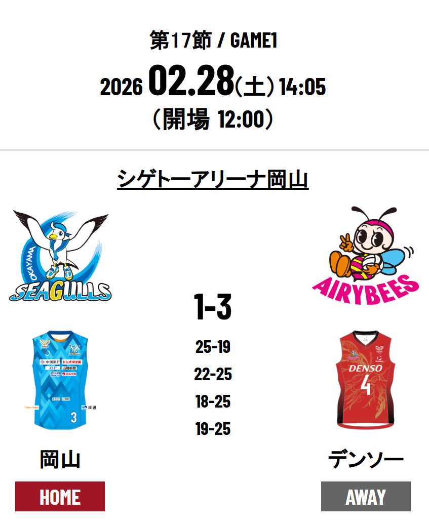 Okayama Seagulls 1 - 3 DENSO Airybees