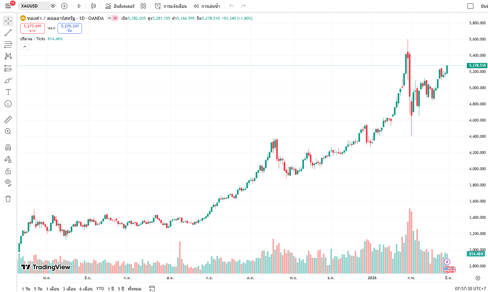 ทองคำ  ขึ้นต่อไป ด้วยปริมาณซื้อขายปานกลาง  คาดว่าจะเร่งตัวขึ้นเมื่อเข้าทดสอบไฮเดิม  ซึ่งควรจับตาว่าสามารถก้าวผ่านได้หรือไม่  ปริมาณซื้อขายก็เป็นตัวชี้อีกตัวหนึ่งที่ไม่มองข้าม  ถ้ารอบนี้ไม่ผ่าน  ความเสี่ยงจะเพิ่มขึ้นอีก
