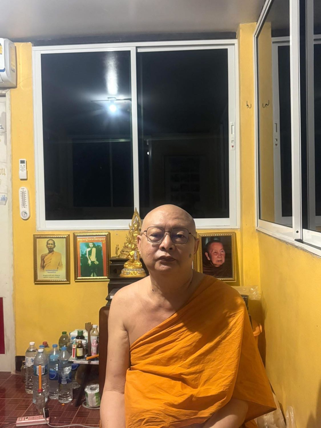 สักครู่หนึ่งท่านก็กลับมาบอกว่าหลวงตาให้ไปพบที่กุฏิ หลวงตาถามว่ามาจากไหน ก็ตอบว่ามา จากสุโขทัย ท่านถามชื่อ-นามสกุล ก็เรียนให้ท่านทราบ ท่านบอกนามสกุลนี้เป็นคนกรุงเทพนี่ ก็ตอบท่านว่า ใช่ครับผมเป็นคนกรุงเทพ แต่มาทํางานที่สุโขทัย ท่านจึงให้พระพาไปพักที่กุฏิ ที่วัดไม่มีไฟฟ้า มืดมาก ต้องใช้ ไฟฉายกับเทียน เดินทางมาทั้งวันอ่อนเพลีย ถึงที่พักจึงจัดแจงที่นอนแล้วนอนทันที พอดึกๆก็ได้ยินเสียงคน เดินนอกกุฏิ เดินไปมาอยู่ชั้นบน เปิดประตูมาก็ไม่พบใคร ก็เลยกลับไปนอน ครั้งที่ 2 ก็ได้ยินเสียงคนเดินนอก กุฏิ เดินไปมาอยู่ชั้นบน เปิดประตูมาก็ไม่พบใครอีกจึงกลับไปนอน ครั้งที่ 3 ก็ได้ยินเสียงคนเดินนอกกุฏิ เดิน ไปมาอยู่ชั้นบน เปิดประตูมาก็ไม่พบใคร จึงนั่งสมาธิข้างนอกสักครู่จึงค่อยกลับไปนอน
