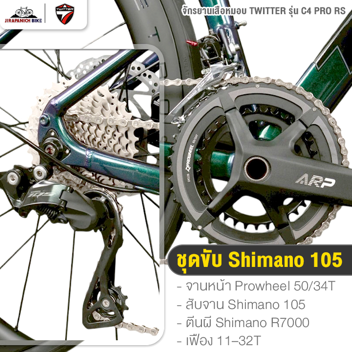 ด้านสเปกขับเคลื่อนใช้ Shimano 105 คู่กับตีนผี 105 R7100 เปลี่ยนเกียร์เนียนและไว้ใจได้ ยาง CST 700x28c เกาะถนนดี ปั่นบนถนนเมืองหรือเส้นทางนอกเมืองก็มั่นใจ จุดที่ทำให้ใช้งานสบายคือเบรก Full Hydraulic กดเบรกละเอียดกว่า โดยรวม จักรยานเสือหมอบ Twitter C4 Pro RS 24สปีด เหมาะกับคนเริ่มจริงจังกับเสือหมอบ สายทำความเร็วทางเรียบ และคนที่อยากได้เบรกมั่นใจสำหรับเส้นทางหลากหลาย 🛣️