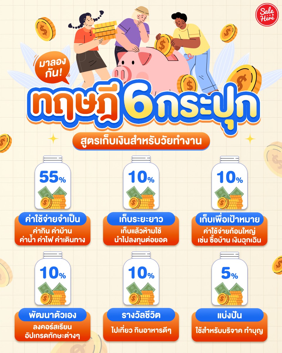 📣 ลองเก็บเงินตามนี้กัน! "ทฤษฎี 6 กระปุก" สูตรเก็บเงินสำหรับวัยทำงาน