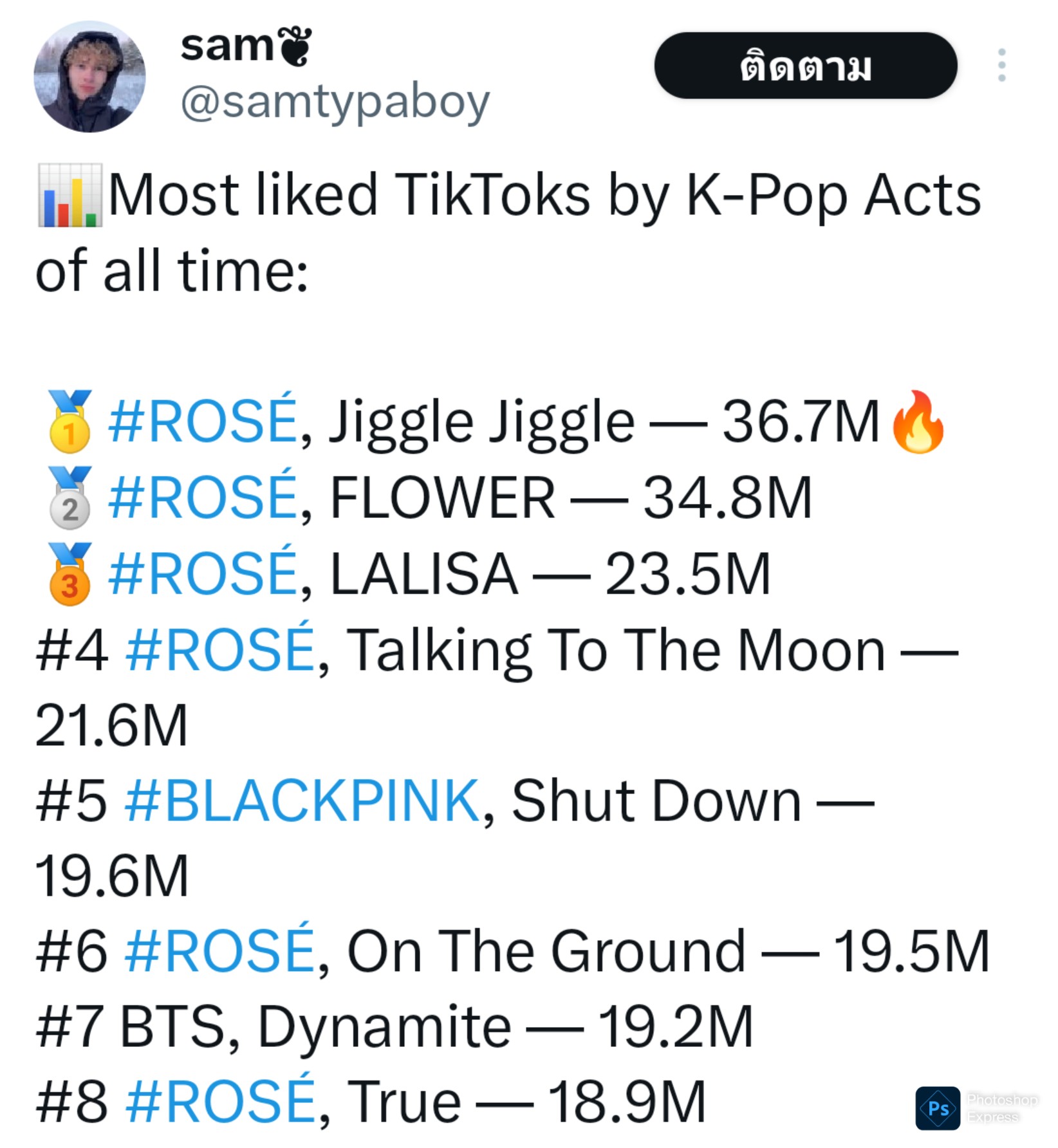 คลิป TikTok ของ BLACKPINK และเมมเบอร์ ครอง 7 ใน 8 อันดับแรกคลิปของศิลปินเคป๊อปที่มียอดกดไลค์สูงที่สุดในประวัติศาสตร์