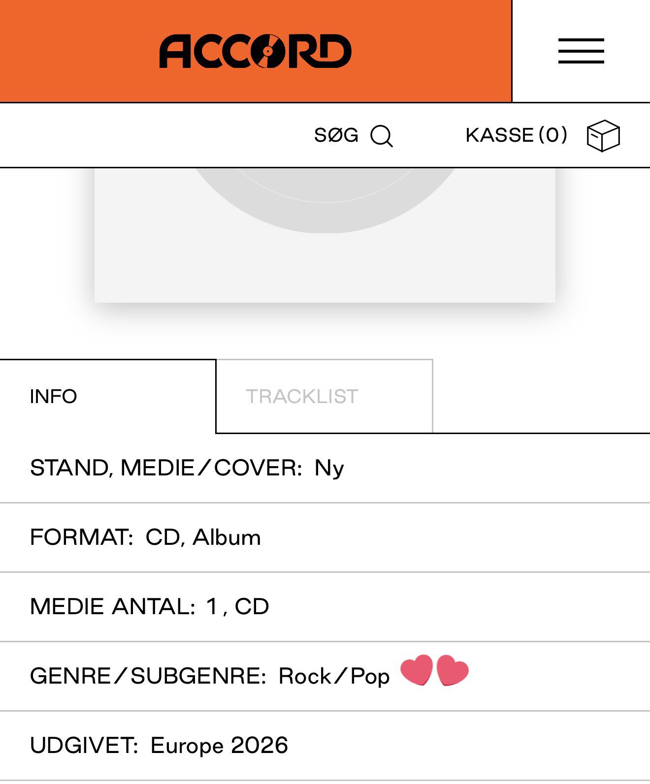 จากข้อมูลของ Accord (ร้านขายแผ่นเสียงในเดนมาร์ก) และ JB Hi-Fi (ร้านขายเพลงในออสเตรเลีย)