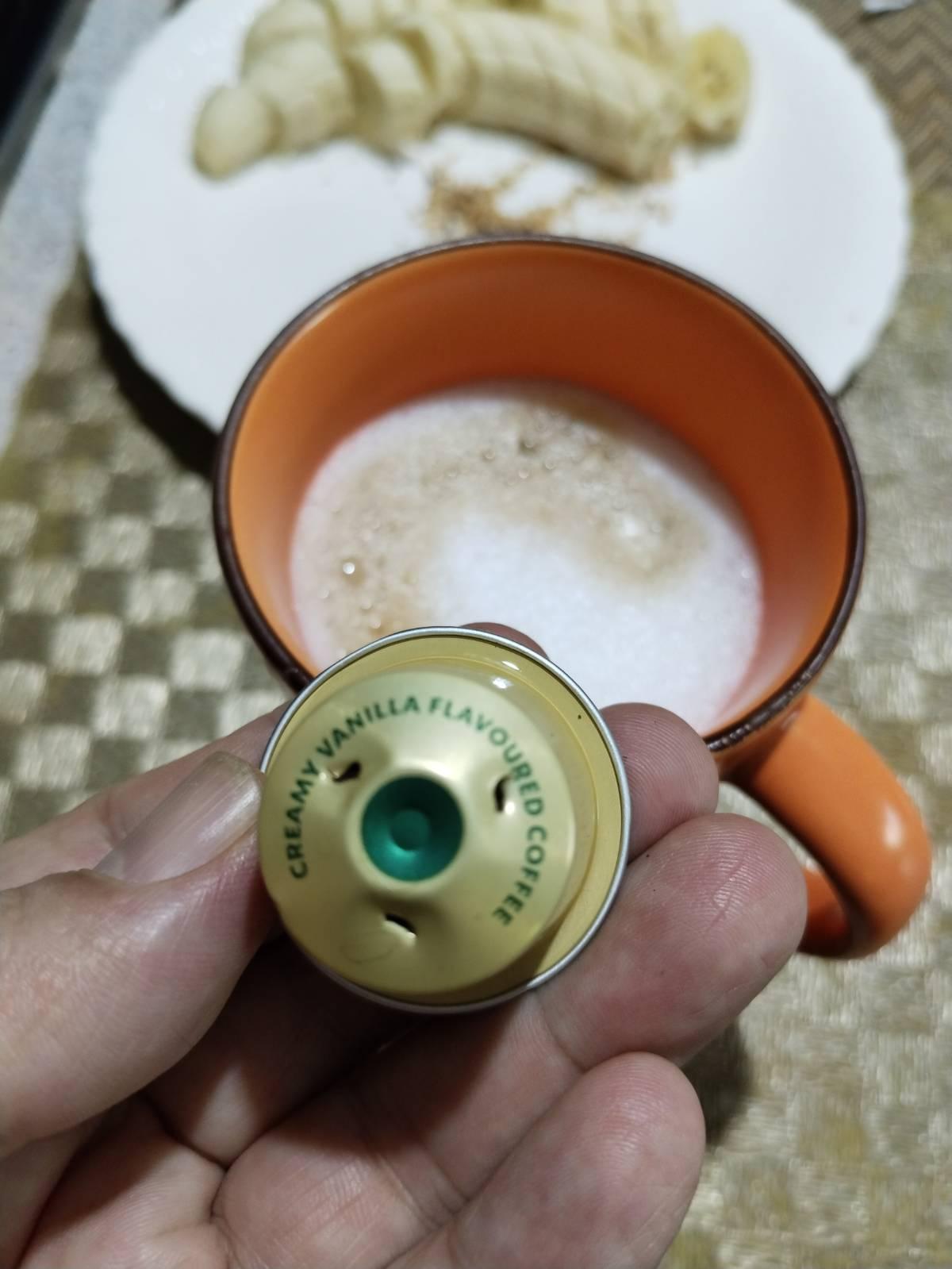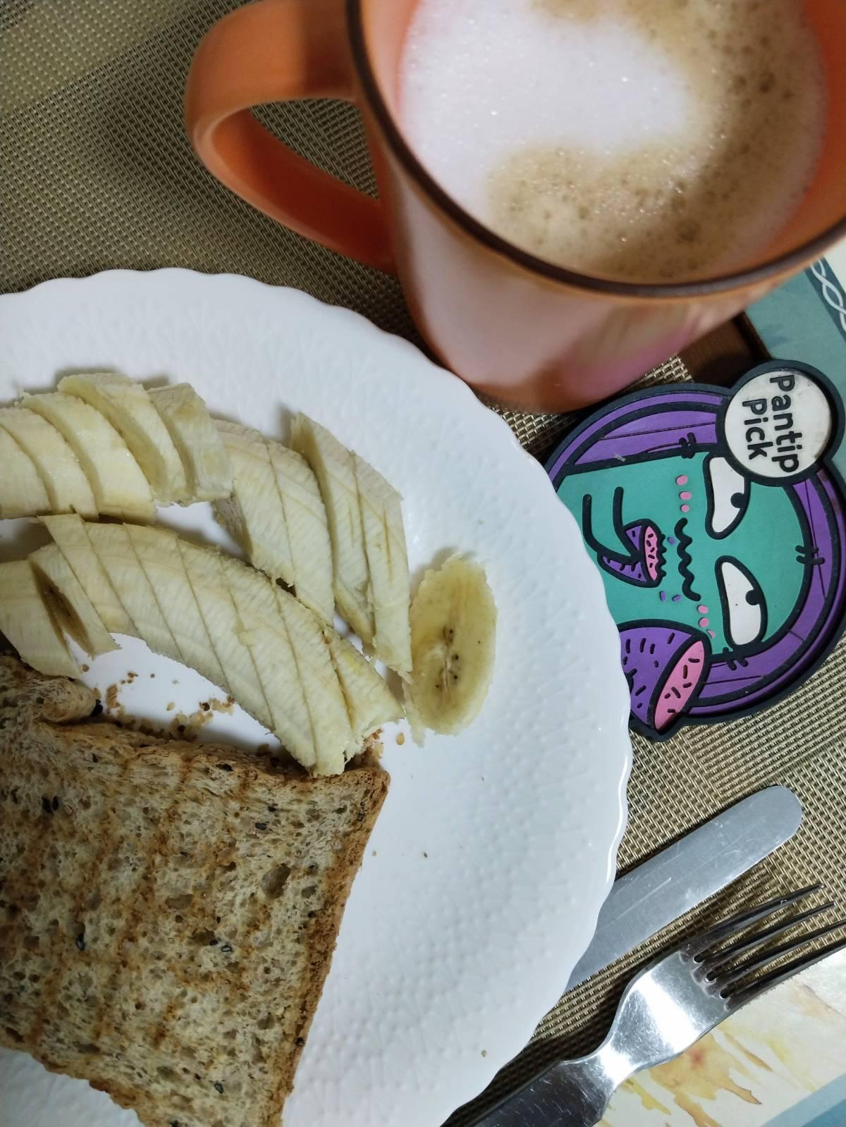 ดื่มกาแฟลาเต้วานิลลา ขนมปังปิ้ง กล้วยหอม