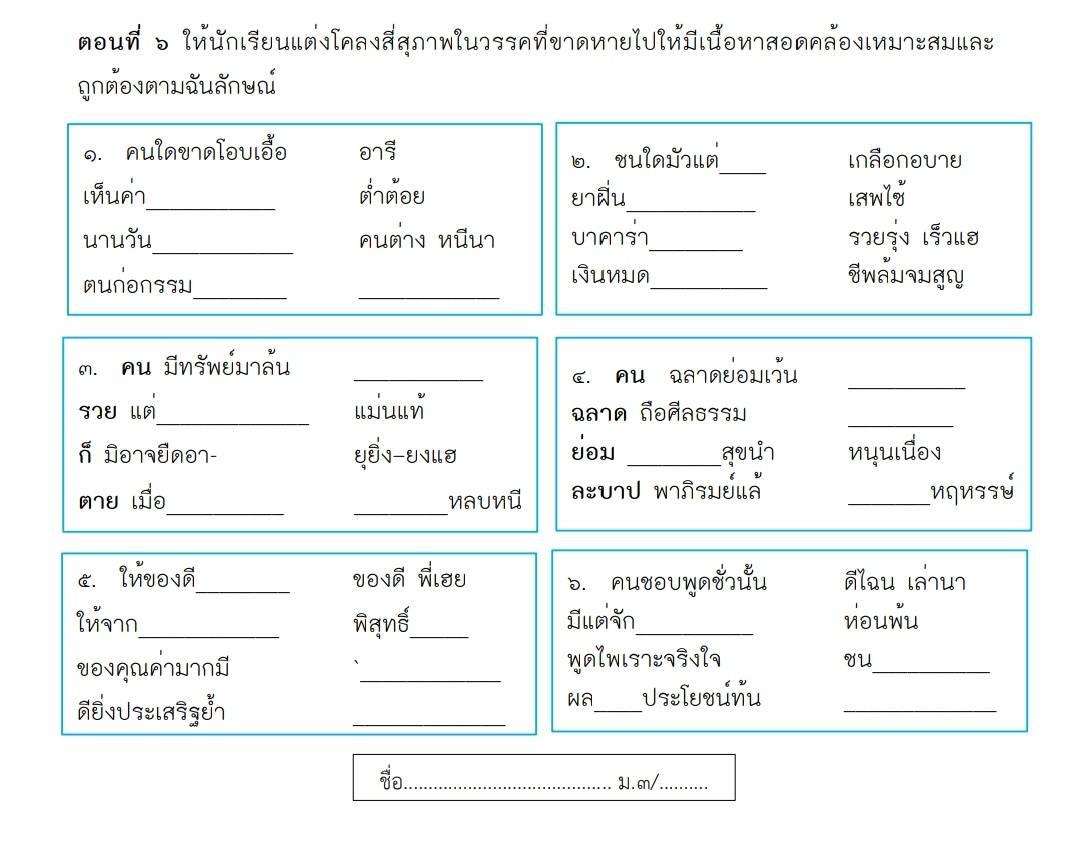 ช่วยเเต่งโครงสี่สุภาพ เรื่อง โรงเรียนของฉัน