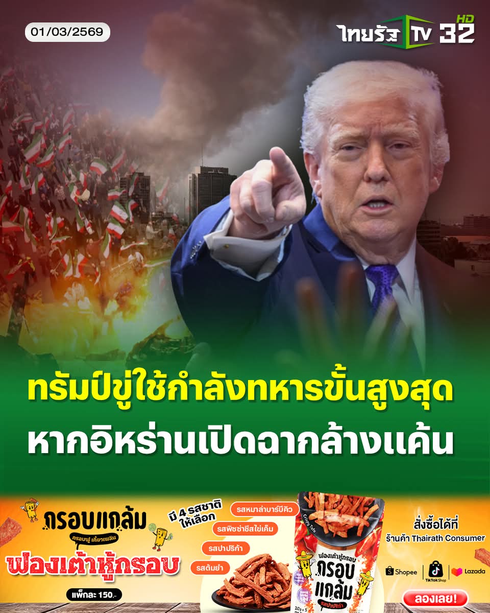 1 มีนาคม 2569 สถานการณ์ความขัดแย้งระหว่างสหรัฐฯ และอิหร่านทวีความรุนแรงถึงขีดสุดหลังประธานาธิบดีโดนัลด์ ทรัมป์ โพสต์ข้อความผ่านแพลตฟอร์ม Truth Social โดยเตือนอิหร่านอย่างแข็งกร้าวว่าห้ามดำเนินการตอบโต้ใดๆ เพิ่มเติม
