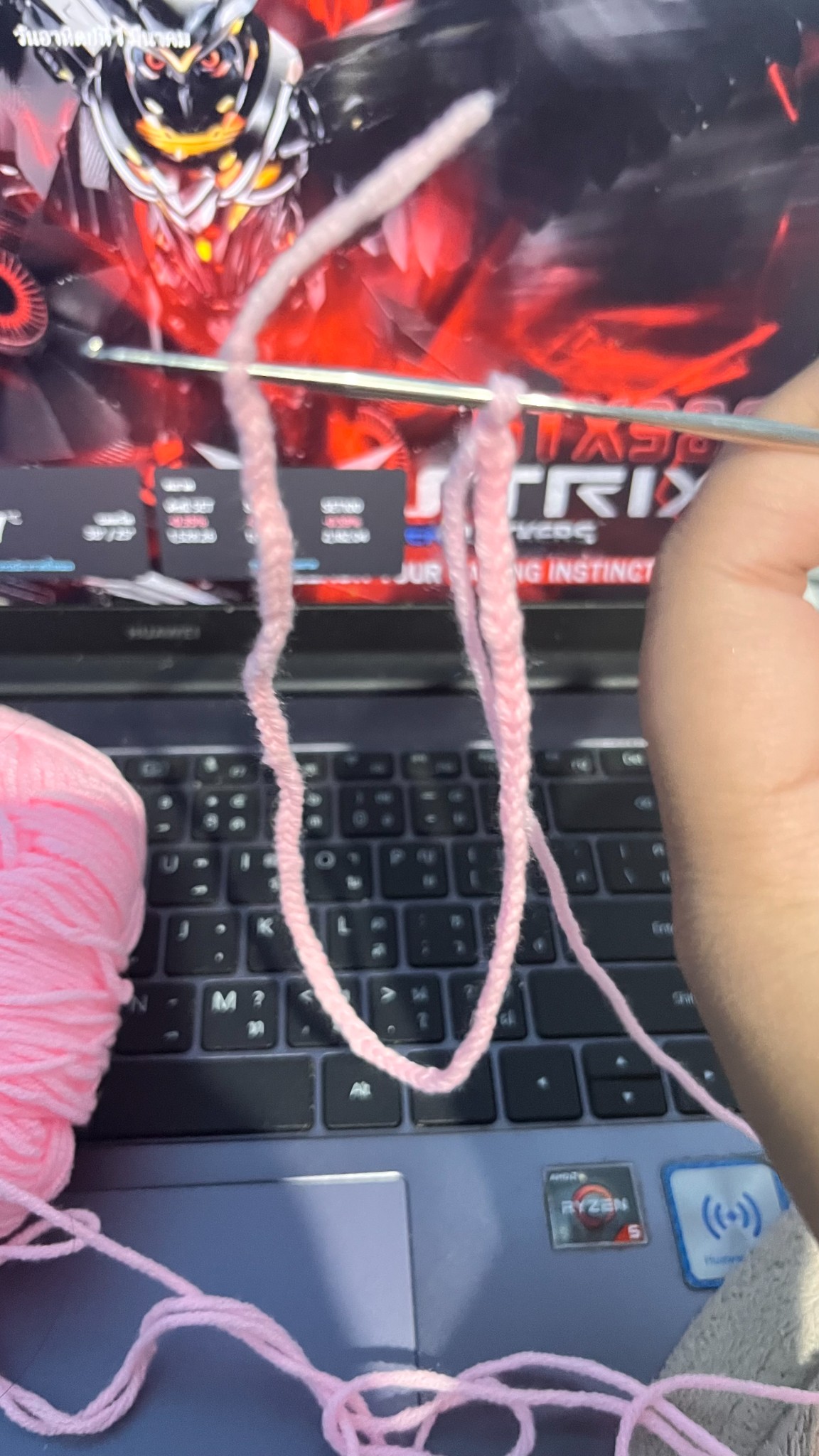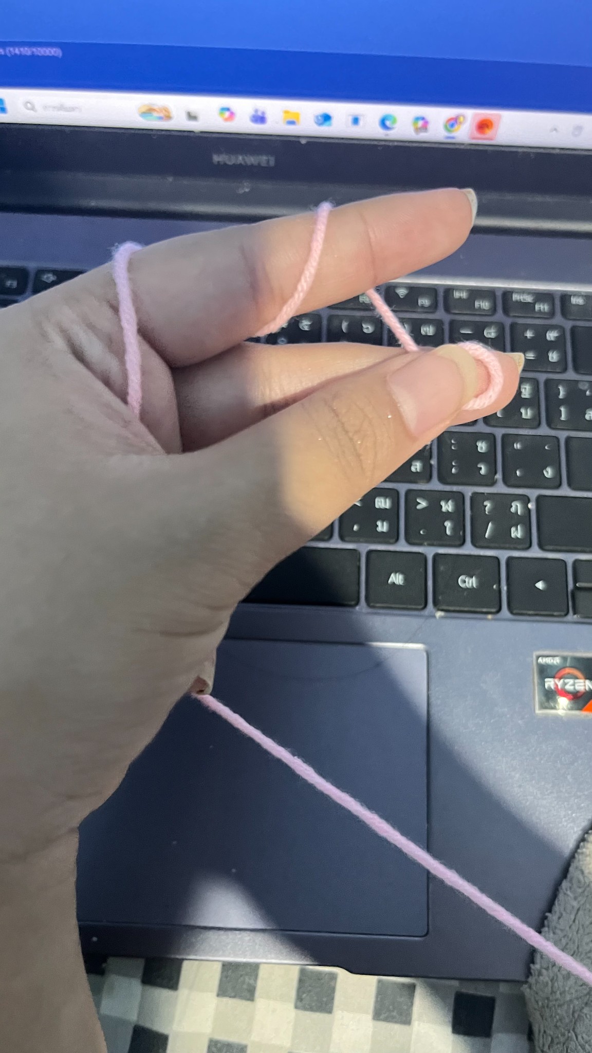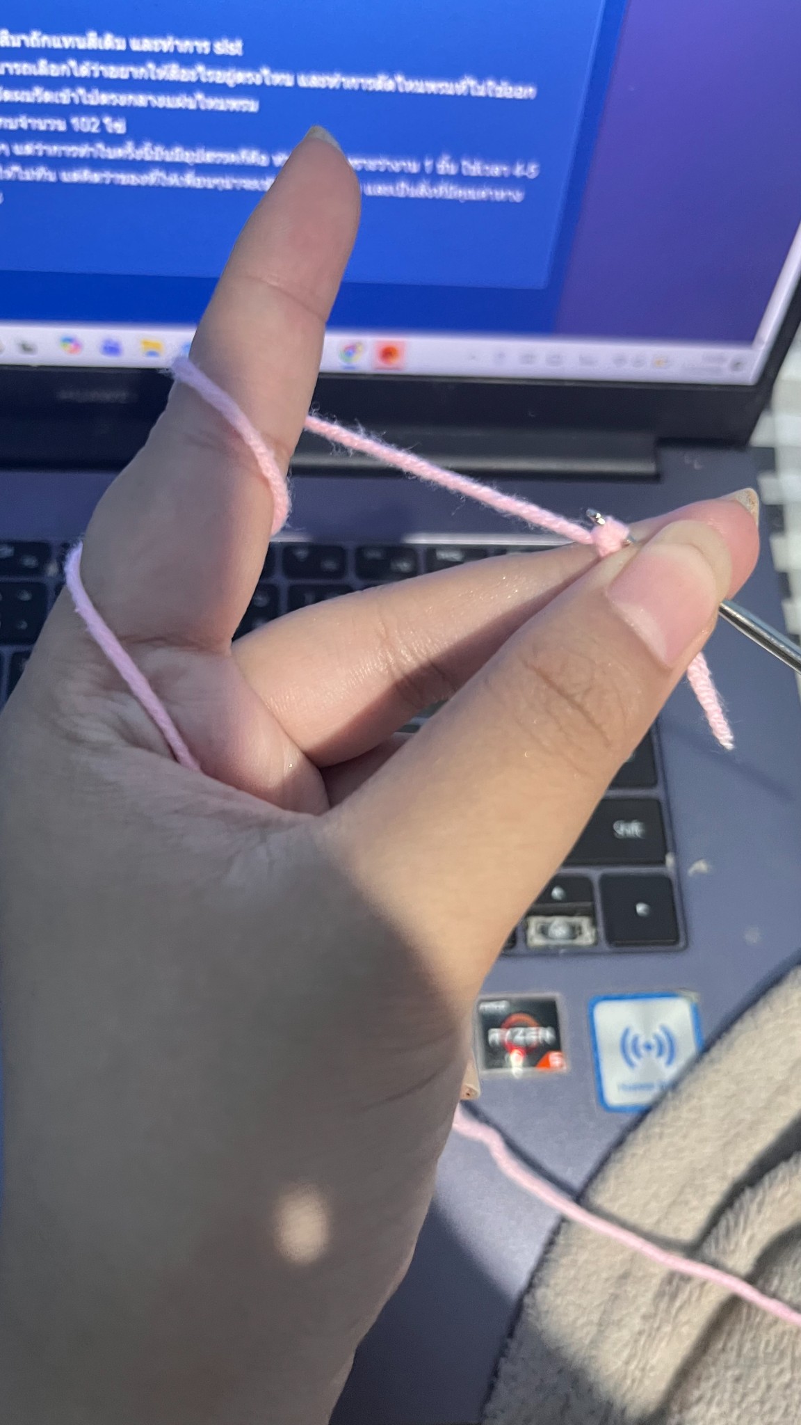 ต่อไปจะเป็นวิธีการถักยางมัดผม