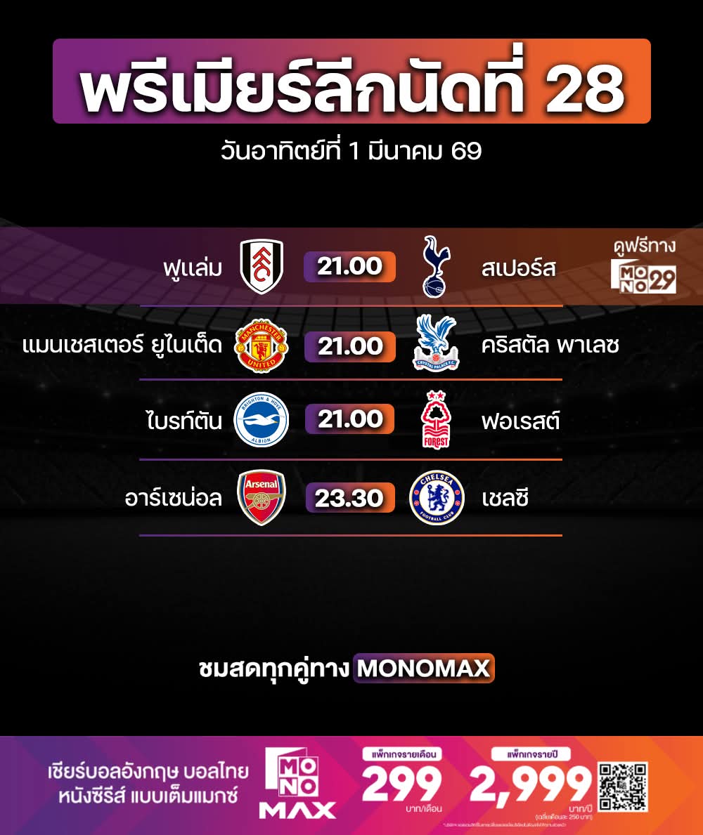 ⚽🏴 พรีเมียร์ลีก นัดที่ 28 🗓️ วันอาทิตย์ ที่ 1 มีนาคม 2569 🔥🔥🔥🔥