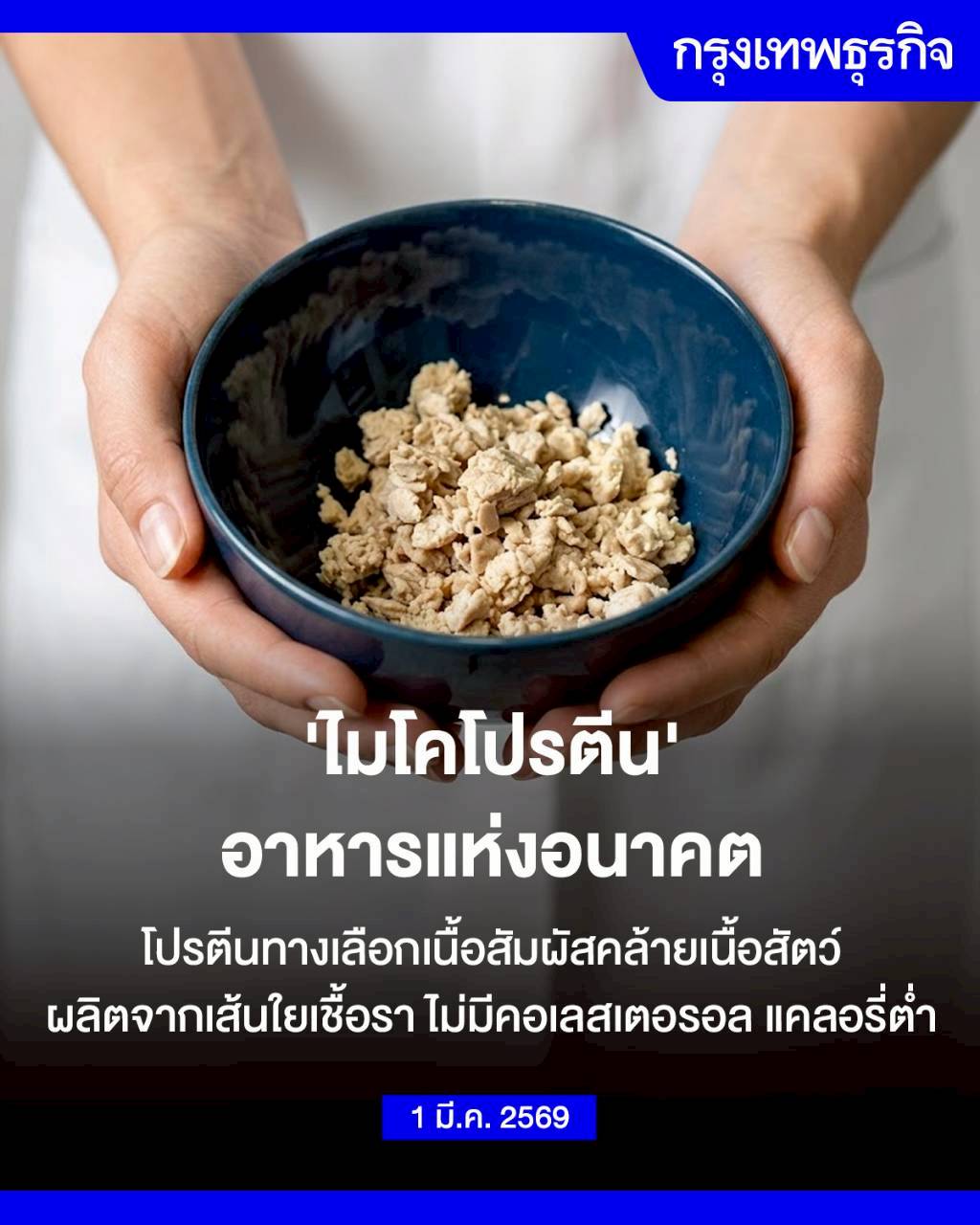 ไมโคโปรตีน อาหารแห่งอนาคต  โปรตีนทางเลือกเนื้อสัมผัสคล้ายเนื้อสัตว์ ผลิตจากเส้นใยเชื้อรา ไม่มีคอเลสเตอรอล แคลอรี่ต่ำ