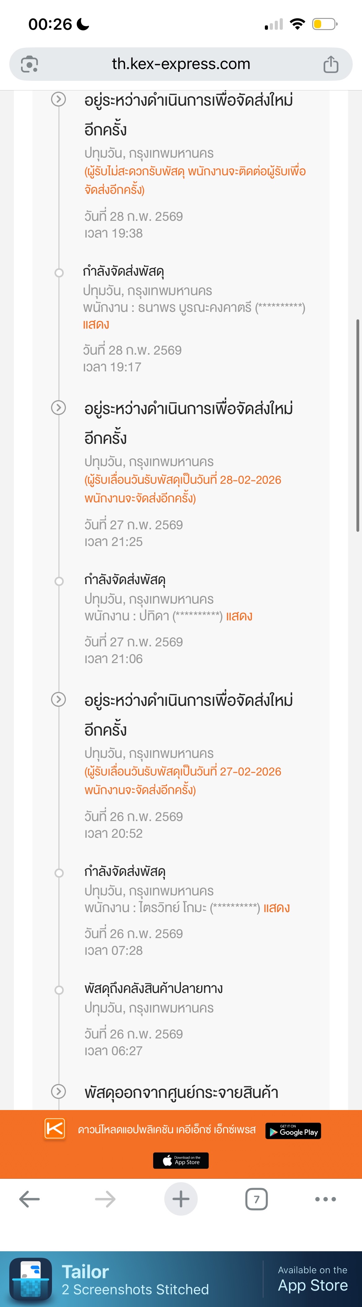 KEX ปทุมวัน ของค้างไม่ส่ง 28กพ - 8 มีนาคม
