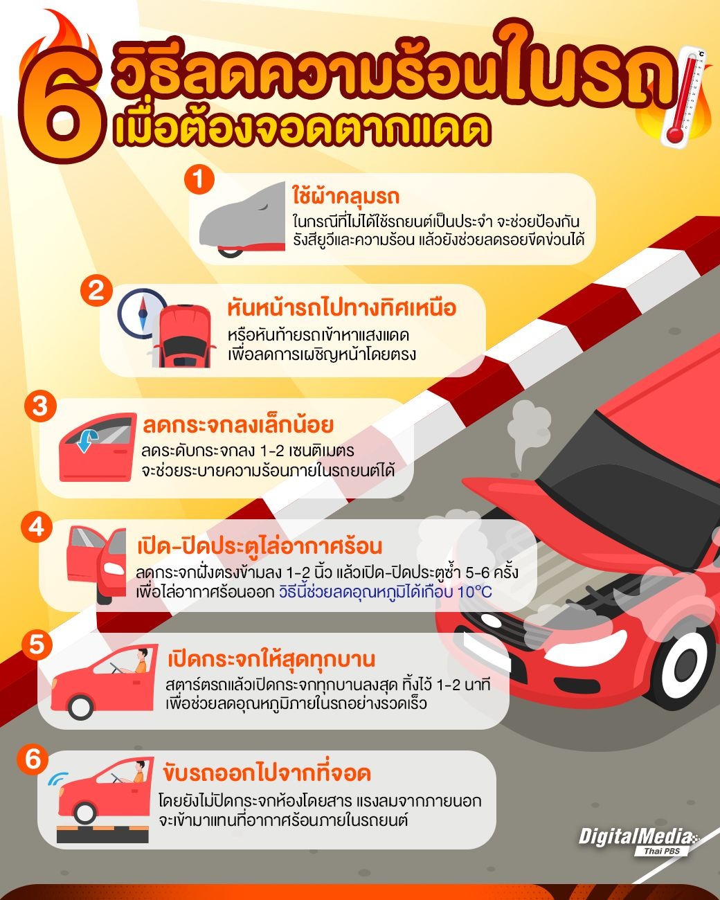 6. ขับรถออกไปจากที่จอด โดยยังไม่ปิดกระจกห้องโดยสาร แรงลมจากภายนอกจะเข้ามาแทนที่อากาศร้อนภายในรถยนต์