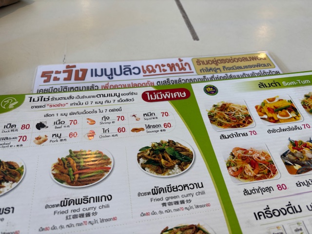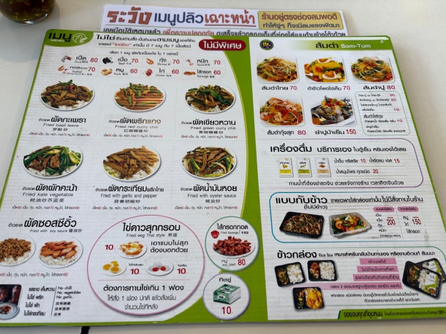 เข้ามาคนไม่คุ้นเคย รับรองว่า อาจจะต้องมีถามว่า มันจะมีป้ายบอกอะไรเยอะขนาดนั้น ผมถ่ายมาไม่หมด จริงๆ มีเยอะกว่านั้นมาก แต่แกเขียนหมดจริงๆ ทั้งเรื่องระวังเมนูปลิว เฉาะหน้า หรือ น้ำแข็งคิด 5 บาท ถ้าใส่แก้วตัวเอง ขั้นตอนการชำระเงิน ห้องน้ำทางไหน และวิธีการสั่งในเมนู คือมีหมดจริงๆ ผมเองก็ยังตกใจ แต่ก็กินมานาน และก็เห็นพัฒนาการของป้ายกฏเฏณฑ์ต่างๆ มากขึ้น แม้กระทั่งการจ่ายเงินด้วยแบงก์ 1000 แกก็จะอธิบายว่าไม่รับอะไรยังไงเพราะอะไร มีการโอนเงินแล้ว